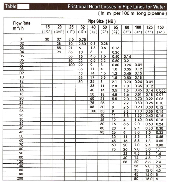 Refer below table to calculate frictional head loss